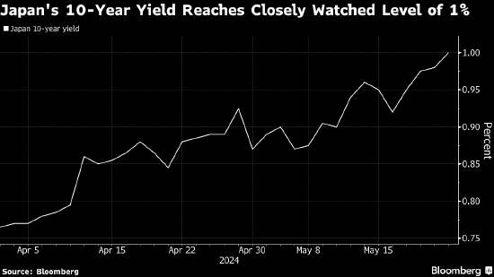 自日本央行2013年加大前所未有的刺激措施以来,日本10年期国债收益率首次触及1%这一心理关卡。