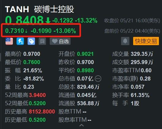 格隆汇5月22日|昨日跌超13%的碳博士控股(TANH.US)盘前再度下跌13%。消息上,公司于2024年5月20日收到纳斯达克股票市场有限公司的不遵守通知,称由于没有及时提交截至2023年12月31日的年度报表20-F。