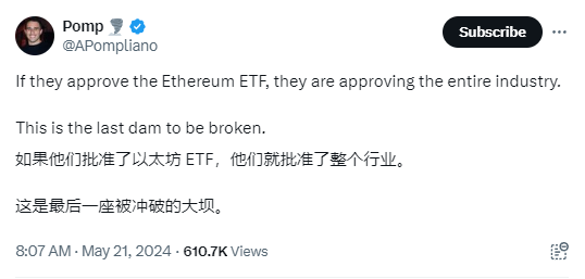 有网友直言,如果SEC批准了以太坊ETF,就相当于批准了整个行业。