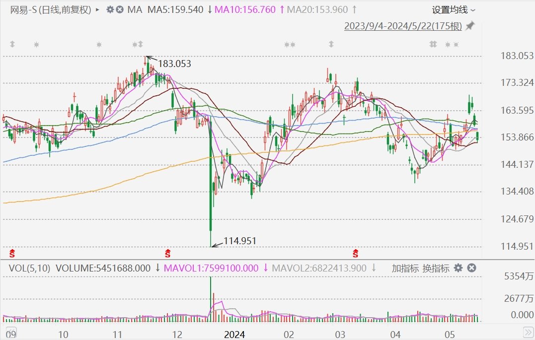 格隆汇5月22日|网易-S(9999.HK)跌近4%至152.3港元,为连续第二日下跌。网易即将于5月23日美股盘前公布业绩。机构预计网易2024年一季度实现营收267.86亿元,同比增加6.95%;每股收益12.13元,同比增加17.0%。