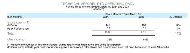 此外,一季度服饰业务同比净增19家直营门店。其中,始祖鸟直营门店一季度末为146家,同比增12%,净增16家。Peak Performance品牌直营门店数量为44家,同比增11%。