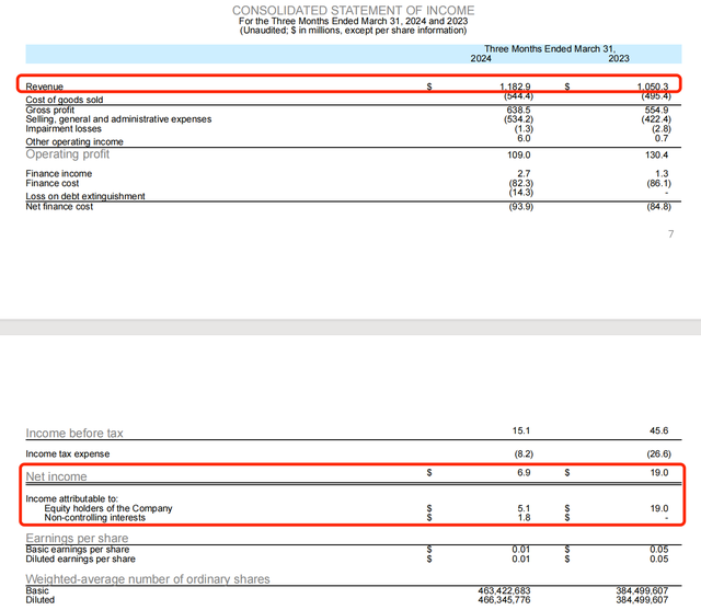 5月21日,运动和户外品牌集团亚玛芬体育(Amer Sports)发布2024年第一季度业绩。一季度实现营收11.83亿美元,同比增长13%,超过此前业绩指引;净利润为690万美元,同比下降超六成;归属于股东的净利润为510万美元,同比下降超七成。
